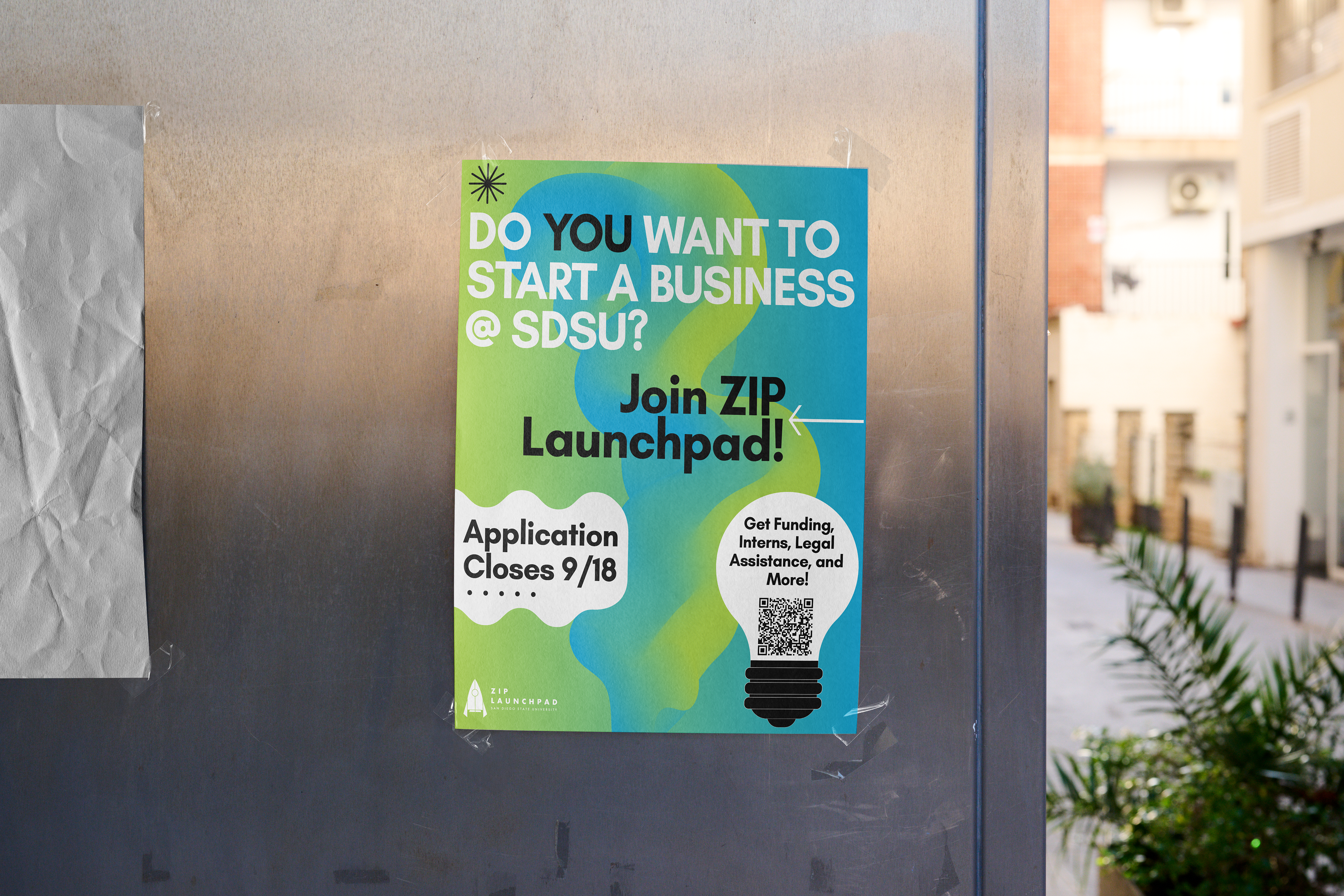 I designed a range of on-campus print campaigns for ZIP Launchpad, translating the refreshed brand identity into high-visibility A-frame posters placed at key student touchpoints across SDSU.