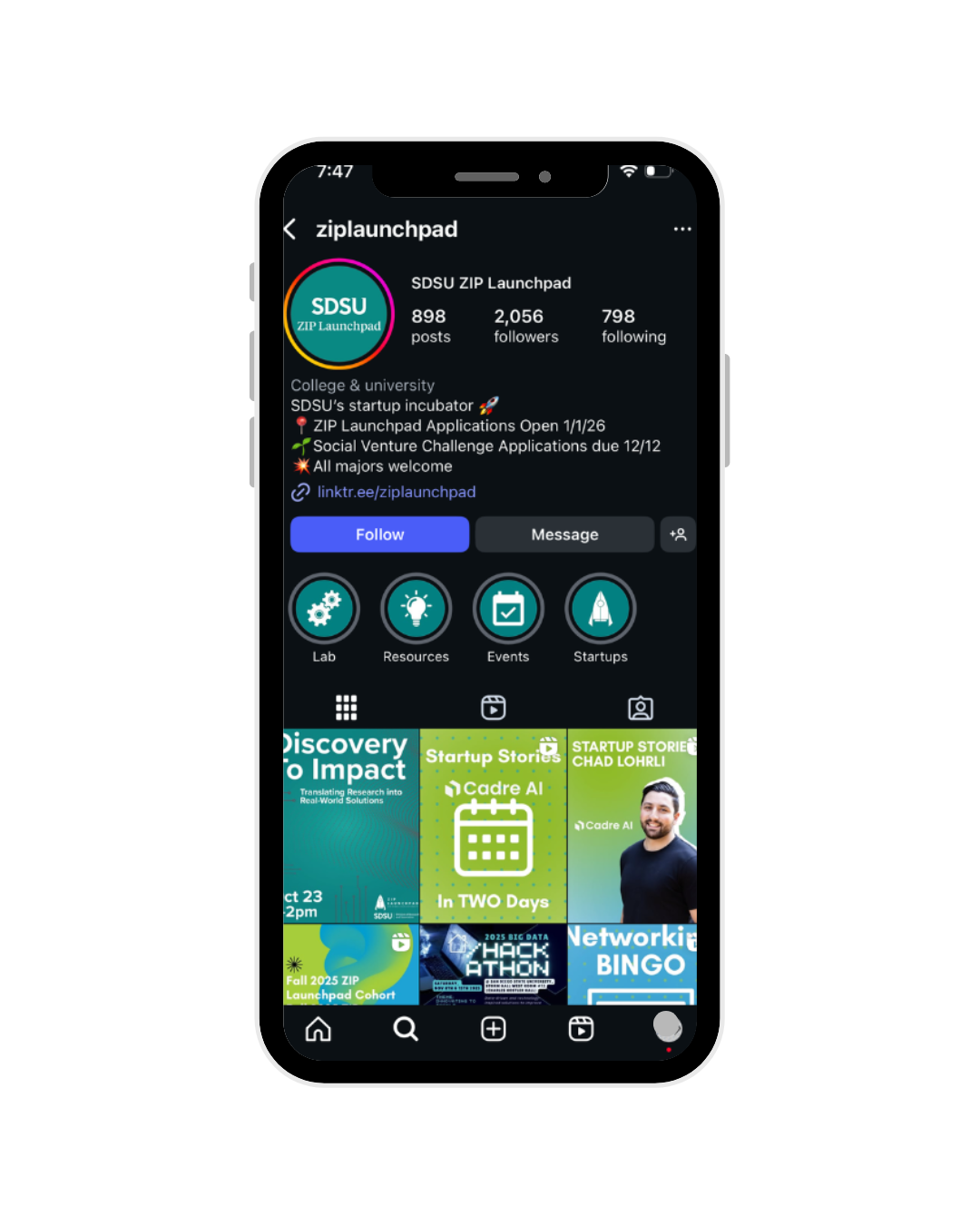 At ZIP Launchpad, I design social content that drives real engagement and inspires students to take action. From application pushes to event promotion and storytelling features, I create visuals that bring the organization’s brand personality to life while staying consistent with our updated identity system.